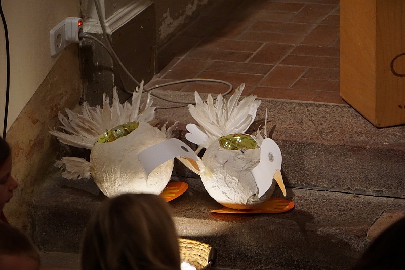 17 Uhr begann der Gottesdienst in der gut besuchten Milkauer Kirche. Zwei Schüler der Werkschule erzählten die Geschichte des Sankt Martin aus Sicht des Bettlers und die Kinder aus dem Kinderland erfreuten alle mit einem schönen Lied. Im Anschluss zogen wir mit unseren Laternen in Richtung der Werkschule, wo wir den Abend am Feuer und mit Liedern des Posaunenchors ausklingen ließen.