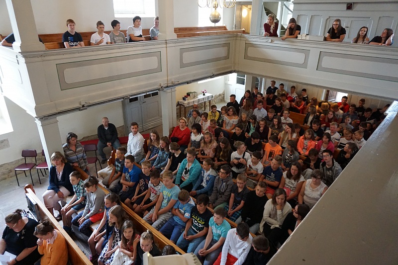 Bevor die Zeugnisausgabe stattfand, besuchten wir die Milkauer Kirche, wo wir einen Abschlussgottesdienst durchführten. Dabei erfreute uns der Chor mit einigen Liedern, es gab eine Andacht und es wurden Kollegen verabschiedet und begrüßt.