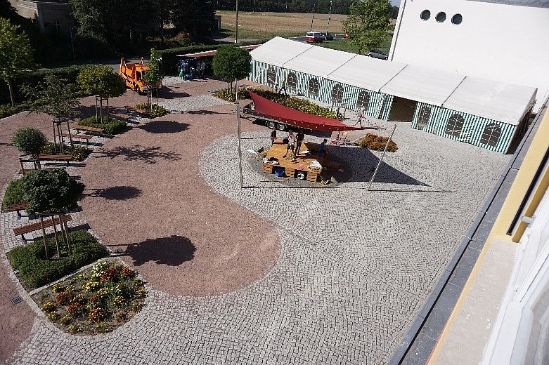 Dank der Förderung aus u. a. Programm war es möglich: Die Zuwegung zur Turnhalle konnte im letzten Halbjahr grundhaft erneuert werden. Somit können alle Sportler auf sauberen und ansprechenden Terrain die Turnhalle erreichen. Die Anlieferung von Essen und die Zufahrt zum Lager des Gemeindebauhofes geschieht in geordneten Bahnen und tagsüber erfreut sich die gewachsene Schülerschaft an dem vergrößerten Platz zur Bewegung in der Hofpause. Glücklich sind auch die Reinigungskräfte über den reduzierten Schmutzeintrag ins Haus. Für das Dorffest 2019 war also der Platz rechtzeitig bereit, dass Festzelt mit Bühne am „Park der Begegnung“ für die vielen Aktionen aufgebaut werden konnte.